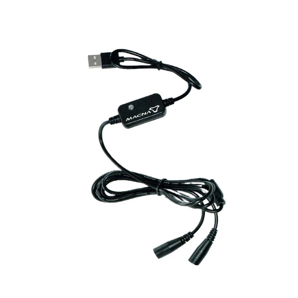 Carica batterie 7,4V con presa USB per abbigliamento riscaldato Macna USB Dual Charger.