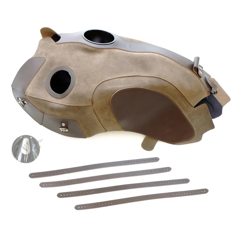 Curata nei minimi dettagli con finiture in cuoio da 3 mm,dona al serbatoio uno stile vintage e lo potegge in caso di urti e graffi durante i viaggi.