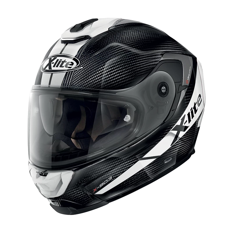 E’ l’esclusiva versione ad alto contenuto di carbonio del nuovo integrale touring top di gamma di X-lite. Si caratterizza per il design d’ispirazione sportiva e le ricche caratteristiche tecniche, alcune delle quali assolutamente innovative. Peso e volume estremamente contenuti (grazie alla costruzione ricca in carbonio ed alla disponibilita’ di tre misure di calotta esterna), sistema di rimozione dei cuscinetti dei guanciali in caso d’emergenza (NERS – Nolan Emergency Release System), visiera ultrawide, innovativo meccanismo visiera a funzionalita’ basculante, esclusivo sistema di assemblaggio magnetico della visiera (MVA – Magnetic Visor Assembly), schermo parasole VPS (regolabile in svariate posizioni), sistema di ritenzione con regolazione micrometrica a doppia leva Microlock2 oppure con doppi anelli (Doudle D-Ring), a seconda della versione di prodotto, imbottitura interna di conforto Carbon Fitting Racing Experience (con innovativa costruzione a rete), esclusivo sistema di regolazione della posizione della cuffia (LPC – Liner Positioning Control) e predisposizione per il sistema di comunicazione N-Com, di nuova generazione, vogliono fare di X-903 ULTRA CARBON l’integrale touring piu’ esclusivo per il moto-turista piu’ esigente.
