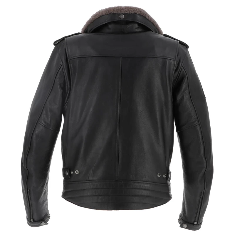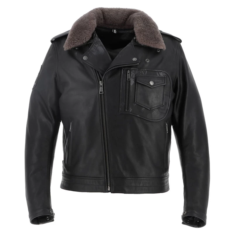 La giacca Helstons Perco è realizzata in pelle di bufalo nera di alta qualità. Inoltre, il suo collo in pelliccia marrone rimovibile è realizzato in vera pelle di pecora. La giacca Helstons Perco si ispira all’iconico taglio perfecto. Per distinguersi, la sua pelle è serigrafata tono su tono sulla tasca sul petto e sui lembi dell’apertura principale. Inoltre, una patch ricamata sulla spalla sinistra e un medaglione d’oro sul petto completano il superbo look della giacca in pelle Helstons Perco. Si adatta perfettamente a uno stile biker o vintage.