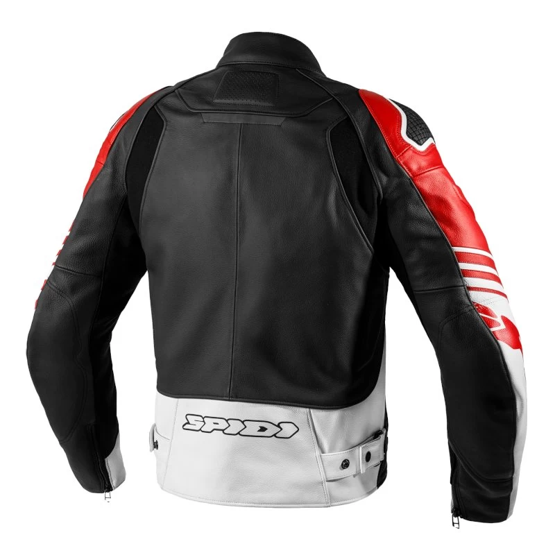 SPIDI Track Warrior è la giacca da moto in pelle per motociclisti sportivi che desiderano la migliore protezione, senza dover indossare una tuta intera. Track Warrior è certificata CE prEN 17092-2:2017 in classe A con scudi Warrior esterni su spalle, oltre a protezioni interne Warrior Lite (EN 1621-1 livello 1) sulle spalle ed a protezioni Force-Tech (EN 1621 -1: 2012) sui gomiti. Per una protezione aggiuntiva, è possibile inserire il paraschiena Warrior livello 1 o 2, oltre alla protezione toracica Warrior Chest, vendute separatamente. Il telaio principale di SPIDI Track Warrior è in pelle bovina da 1,1 a 1,2 mm di spessore, con sezioni elasticizzate in Flex Tenax e Nylon 6.6 ad alta tenacità.