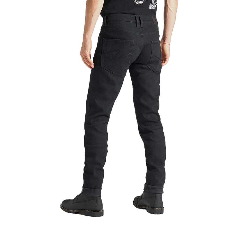 Sfoggia il vero look da motociclista con gli Steel Black 02 di PANDO MOTO. Questi jeans slim fit nero carbone e con vita regolare sono funzionale e semplici. Grazie al denim elasticizzato monostrato 13oz con il 25% di Dyneema® (il materiale in fibra più robusto al mondo), puoi stare tranquillo ogni volta che sali in sella. Sono provvisti di protezioni SAS-TEC Triple Flex sia per le ginocchia che per i fianchi.