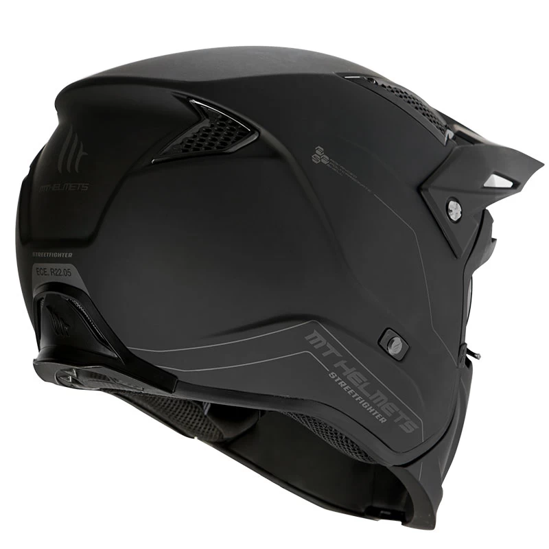 Il casco Streetfighter Sv del marchio spagnolo MT Helmets rappresenta un perfetto dispositivo per la sicurezza adatto per il trial ma utilizzabile anche in città. La struttura innovativa consente infatti a questo casco jet convertibile di trasformarsi in un dispositivo integrale dotato di una pronunciata mentoniera che aumenta il livello di sicurezza e protezione del volto.
