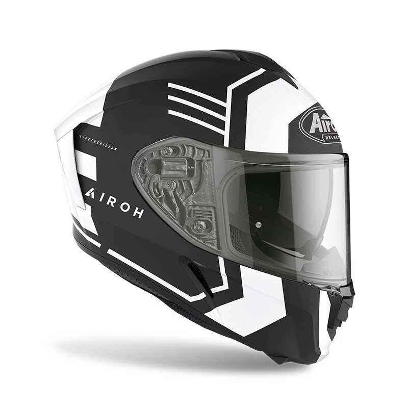 Feel the Spark. Con il nuovo full-face di Airoh in HRT (High Resistant Thermoplastic) dalle linee aggressive ed aerodinamiche ti sentirai perfettamente a tuo agio in ogni situazione dove ci sia asfalto davanti a te. Ingegnerizzato nella galleria del vento e sviluppato su 2 diverse misure di calotte esterne, Spark saprà accendere la tua voglia di andare in moto, qualunque sia la tua destinazione. Visiera Extra-Wide, Sun Screen Visor integrata, Bluetooth-Ready, Stop Wind e Pinlock inclusa completano la dotazione di un casco dalle caratteristiche da top di gamma. Thermoplastic HRT. From 1520 g ±50 g. 2 shells: 1° XS-S-M, 2° L-XL-XXL.