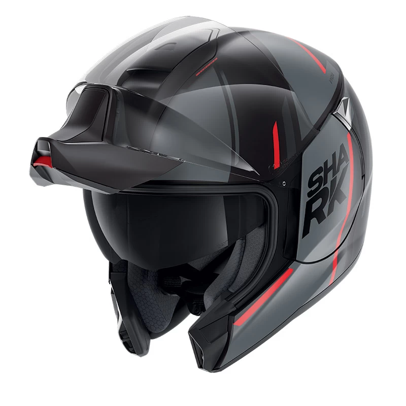 L’EVOJET si ispira ai codici della mobilità urbana: innovazione, tecnologia ed eleganza. Questo nuovissimo concetto SHARK soddisfa le esigenze degli utilizzatori urbani ed extraurbani che vogliono usufruire di un casco sicuro, capace di riunire i vantaggi di un jet, un modulare e un integrale. Il suo look raffinato e le sue finiture bicolori lo rendono il casco tendenza e intramontabile per antonomasia. Pratico e confortevole con la sua doppia omologazione jet e integrale, offre un incredibile campo visivo associato a una sensazione di leggerezza che darà l’impressione di non indossare nessun casco. L’innovazione principale dell’EVOJET risiede nella sua visiera collegata alla mentoniera che gli offre, in posizione chiusa, una superficie di visiera eccezionale e un campo visivo panoramico. Ultra pratico, il passaggio dalla posizione jet a integrale si effettua facilmente, con una sola mano. Il suo sistema di blocco della mentoniera, basato su un dispositivo di aggancio sicuro, permette di ottenere un livello di protezione premium. Grazie alla sua struttura EPS multi-densità, che offre un assorbimento ottimale degli urti, l’utilizzatore può guidare in tutta sicurezza, con il casco in posizione aperta o chiusa. Al fine di offrire una qualità ottica eccezionale, la visiera dell’EVOJET è stata ideata in classe ottica 1 a spessore variabile, in modo da eliminare gli effetti di distorsione visiva, quale che sia l’angolo di visione. La visiera beneficia inoltre di un trattamento antigraffi e anti-appannamento. Il suo sistema di aerazione è stato ottimizzato per assicurare un flusso d’aria continuo durante l’utilizzo. La mentoniera è munita di un’aerazione che distribuisce l’aria lungo la visiera. Il design innovativo dell’EVOJET è stato pensato sin nei minimi dettagli: tutta la meccanica è stata accuratamente nascosta dietro i supporti laterali, per un casco dallo stile essenziale e tendenza.