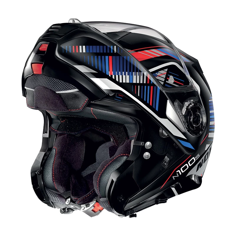 È la nuova e più esclusiva versione dell’apribile top di gamma di Nolan, ora arricchito dell’imbottitura interna di conforto Clima Comfort con innovativa costruzione a rete e del sistema di regolazione della posizione della cuffia (LPC-Liner Positioning Control). I nuovi contenuti tecnici trovano riscontro in una vestizione grafica sportiva ed elegante e nella completa revisione stilistica dell’imbottitura interna di conforto. Sono poi confermate le consolidate caratteristiche tecniche che fanno di N100-5 un prodotto apprezzatissimo dai moto-turisti più esigenti: volume contenuto (grazie alla disponibilità di due misure di calotta esterna), doppia omologazione P/J, visiera ultrawide, schermo parasole VPS (regolabile in svariate posizioni e dotato di sistema di richiamo automatico), sistema di ventilazione superiore AirBooster Technology, movimento di rotazione della mentoniera con traiettoria ellittica, esclusivo sistema di apertura della mentoniera con meccanismo a doppia azione, sistema di ritenzione con regolazione micrometrica a doppia leva Microlock2, imbottitura interna di conforto Clima Comfort (con tessuti micro forati e paranuca regolabile) e predisposizione per il sistema di comunicazione N-Com.