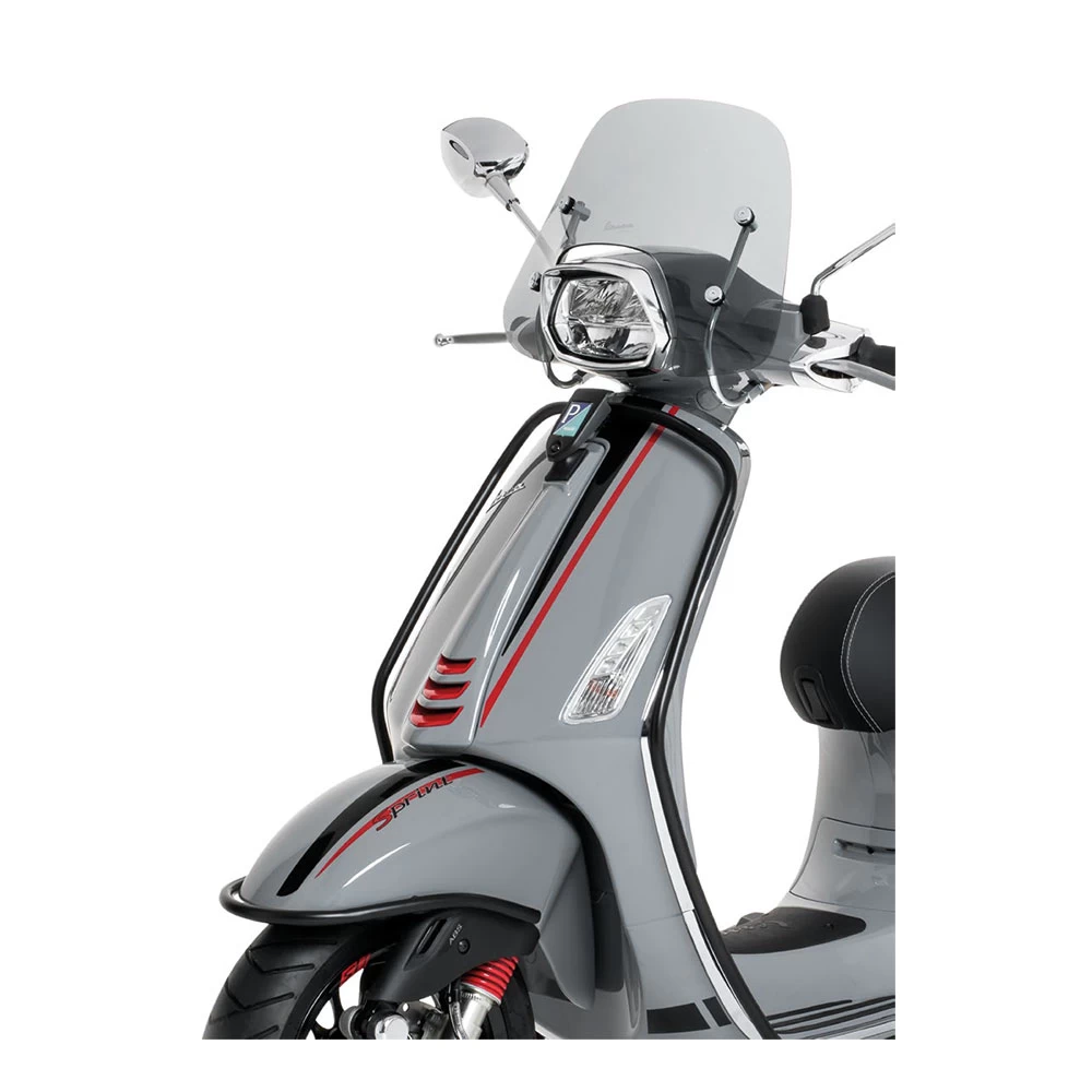 Il perimetrale anteriore nero è in grado di coniugare un design elegante con una straordinaria protettività. Con una forte personalità, consente infatti di proteggere dagli urti la scocca del veicolo,può essere montato su vespa sprint,vespa primavera e vespa elettrica.