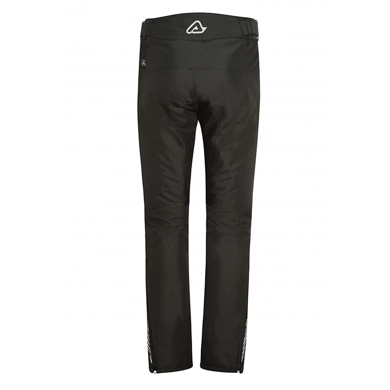Vestibilità Touring. PANTALONE CERTIFICATA EN 17092-4:2020 class A. PROTEZIONI GINOCCHIA CERTIFICATE EN 1621-1: 2012 Type B Level 2 (man). PROTEZIONI GINOCCHIA CERTIFICATE EN 1621-1: 2012 Type A Level 2 (lady). 2 tasche laterali impermeabili totalmente nastrate. Vita regolabile. Fondo gamba apribile. Logo ACERBIS e applicazioni riflettenti sulle gambe. Materiali. COMPOSIZIONE: Esterno: 100% Poliestere. Fodera: 58% Poliammide 42% Poliestere. MATERIALI: Esterno: Tessuto pantalone 600D in poliestere resistente allo strappo e all’abrasione, idrorepellente. Interno: Interno vita in micro pile. Rivestimento impermeabile e traspirante applicato all’interno della fodera, tra il tessuto principale e la rete. Cuciture totalmente nastrate. Imbottitura interna staccabile gr.60.