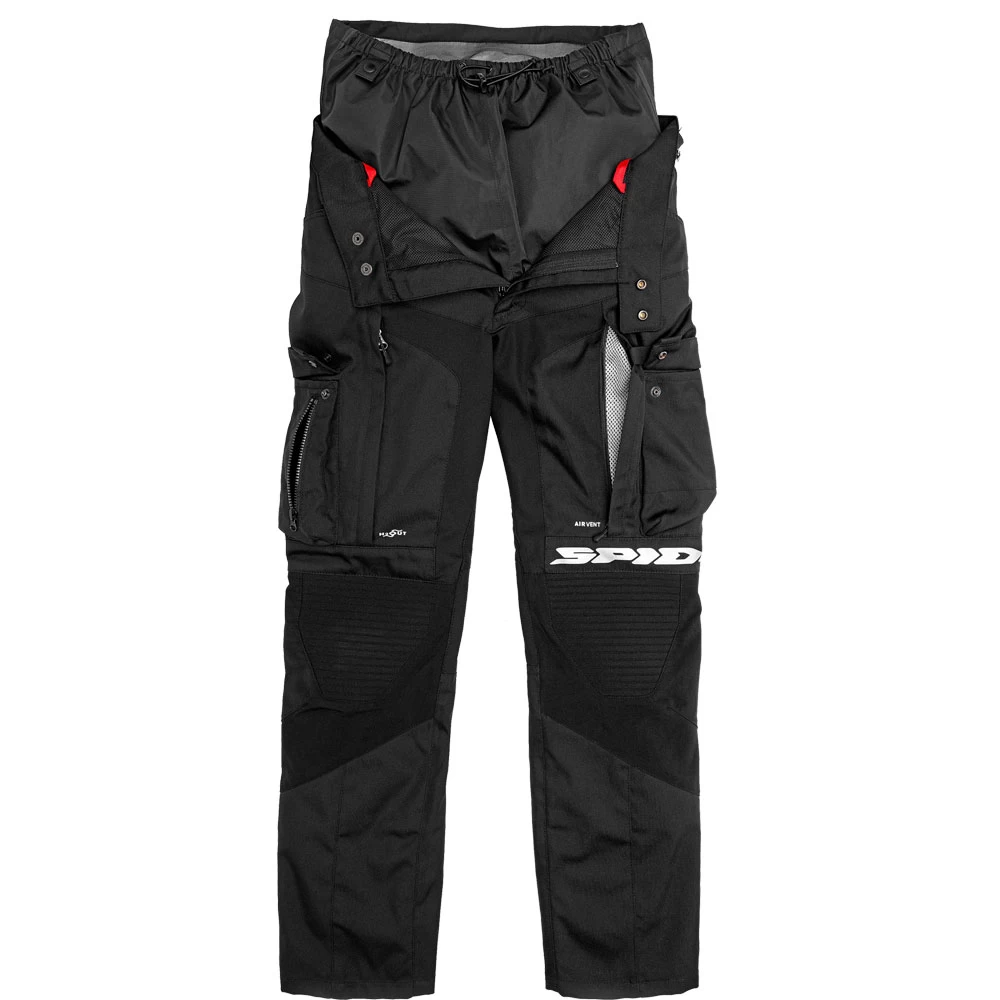 L’ergonomia è stata studiata per massimizzare il comfort nei lunghi viaggi, grazie anche alla cintura posteriore molto alta che ripara la parte lombare dalle correnti d’aria ed alla zip di collegamento che unisce i pantaloni a qualsiasi giacca SPIDI predisposta. Il tessuto principale dello strato esterno integra un Nylon 6.6 Extra Tenax ad alta tenacità con un poliestere spalmato PU e con parti elastiche termoformate, per un comfort totale. Grazie all’utilizzo di materiali così performanti, e alla presenza dei protettori rimovibili Warrior Light di livello 2 su gionocchia e fianchi, Allroad ha ottenuto la certificazione in classe AA secondo Pr En 17092-3:2017. All’esterno sono presenti 5 tasche, di cui 2 con chiusura a bottoni automatici ed una con zip.