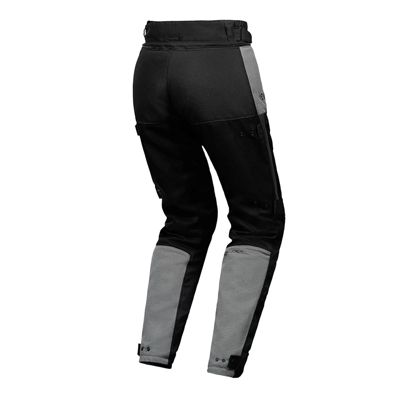 Regolazioni: Cosce: bottoni a pressione su cinturino elastico – Ginocchia: bottoni a pressione su cinturino elastico – Caviglie: bottoni a pressione su cinturino elastico – Vita: cinturino in velcro + fibbia di serraggio / passanti per cintura – Vita pantaloni antipioggia: corda elastica + tanka – Vita + caviglie pantaloni antipioggia elasticizzati – Zip di connessione giacca/pantaloni 270 °