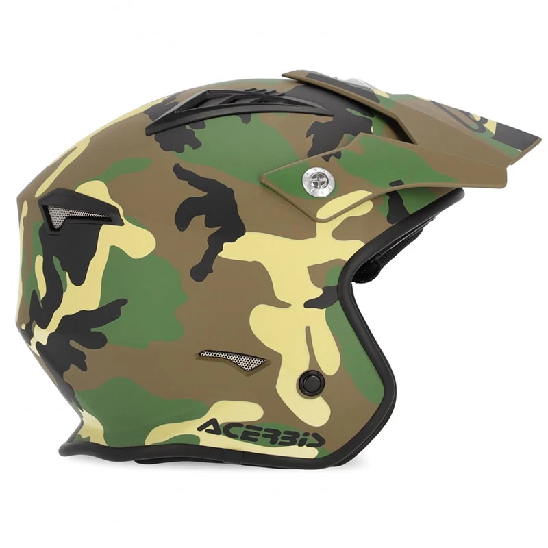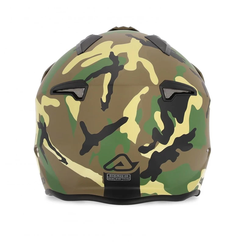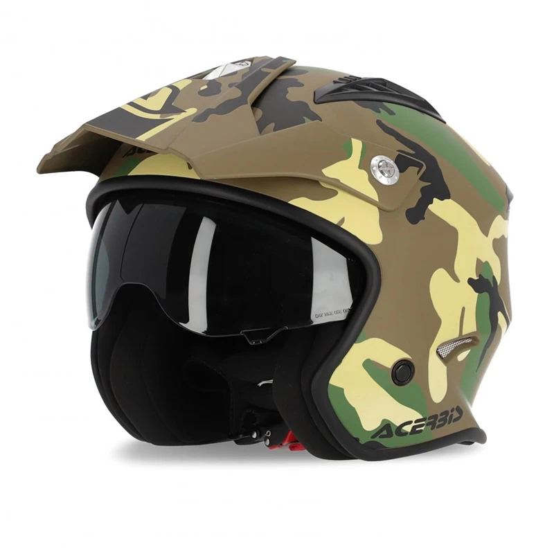 Presa d’aria superiore regolabile. Prese d’aria posteriori e laterali per aumentare l’aerazione massima. Visiera parasole asportabile. Frontino removibile e regolabile. Interni anallergici, removibili e lavabili. Chiusura laccetto micrometrica a sgancio rapido. Peso 1050 ± 50 gr. (taglia M). OMOLOGAZIONE ECE/ONU 2205. Materiali: termoplastica.
